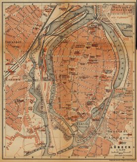 Lübeck is surrounded by the Trave River which flows to the Baltic Sea in North East of Lübeck. Even if I did show you a Map from 1910, you can see that the River flows completely around Lübeck and that was used as a System (You can click on the Image to enlarge). Maybe not in 1910 but in Medieval it was one Part of the Defence System in addition to the Rampart and Stone Walls and so on. Luckily you can still find Remains of that Time and I think I will show you more of our historical City and the Remains of Medieval someday for sure.