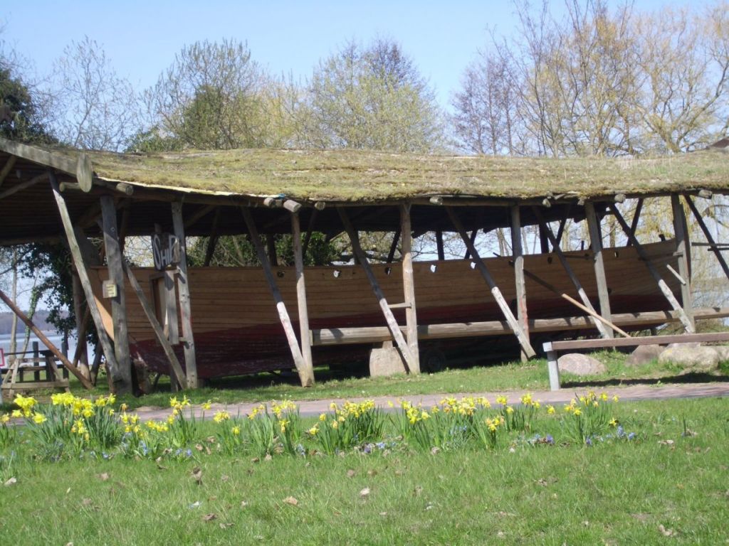 We found that finished Boat in Ratzeburg. Looks pretty cool. I bet those who finished the Boat, will have a lot of fun using it. There are some Lakes all around Ratzeburg but I am not sure if they use the Boat there someday. It might be that they use it also northward in the Baltic Sea. But who knows.