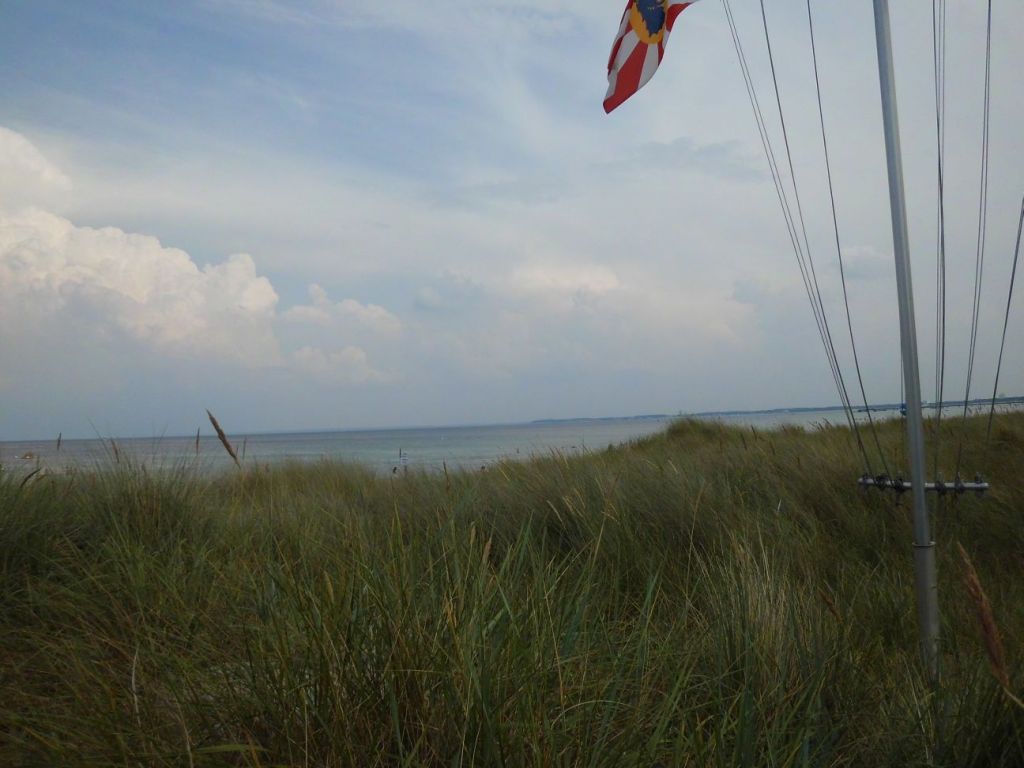Arrived in Scharbeutz the Weather started to change a little bit. It was still warm but the Heaven was not so blue anymore like when we started in Lübeck. But this did not stop us. You can see the Baltic Sea behind that Dune…
