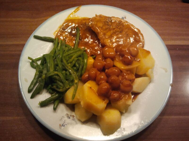 This photo is my contribution to the “Weekly Photo Challenge: From Above“. I took a photo from above and you can see potatoes with mushrooms, string beans and a schnitzel with sauce. This is very good german cuisine and pretty tasty. The husband of my mother did create this wonderful dish.