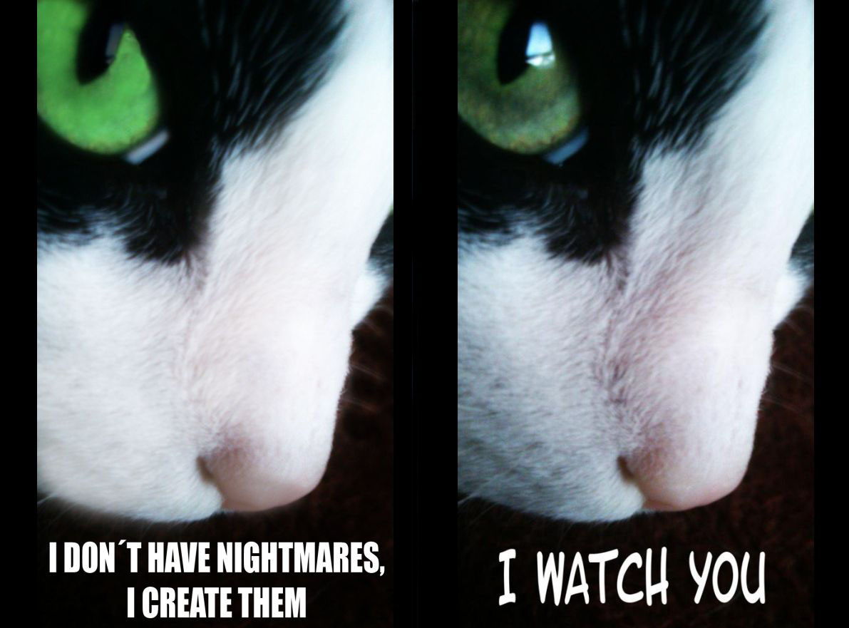 And then I have noticed that there are several memes out there with the text “I don´t have nightmares, I create them!” and I thought this is too funny and fits better to my own meme, which is why I added this text to the new image. Here are both images by comparison… on the left the new one and one the right the older image…