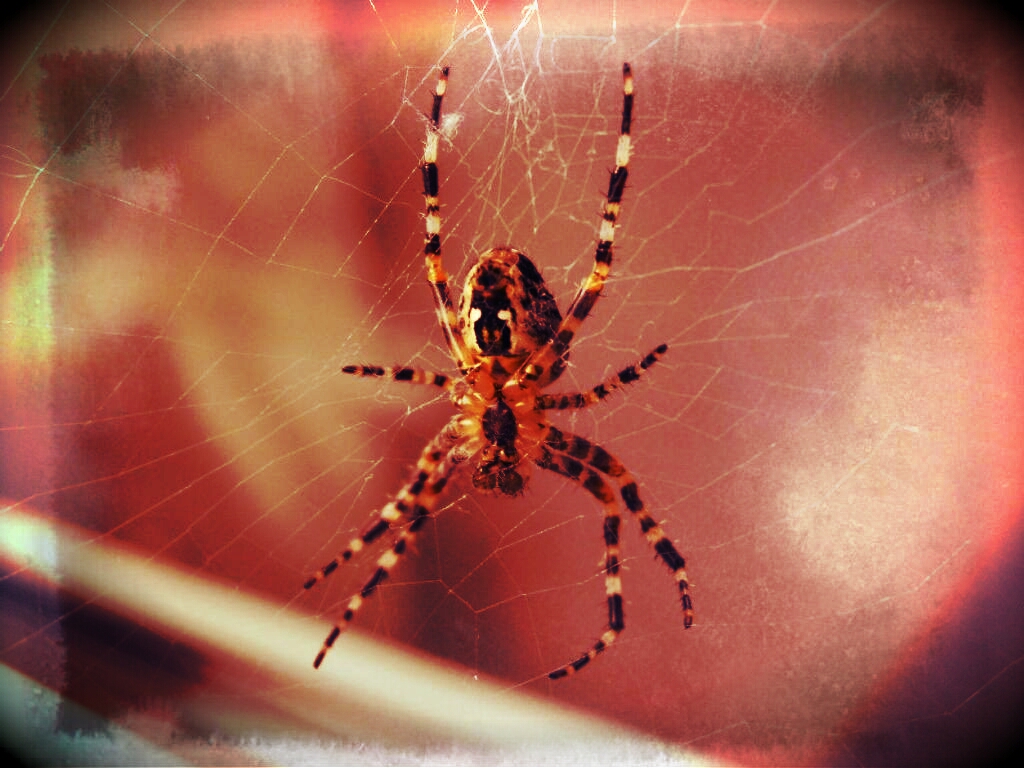 But you can find a spider photo in my older camera review and now I took this spider image to apply some effects with the android app called Pixlr-o-matic. I really like how the mood of an image can change if you apply effects. I thought the result would be worth to share. It´s by the way a typical cross spider which you can find here in Germany very often.