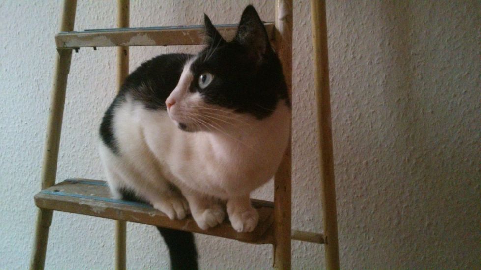 My cat Shyna found out that there is a folding ladder in one of my rooms. Since then, she loves to hang around on the ladder. I made some funny photos but I picked out one and edited the image with Photoshop. I really like this image of Shyna anyhow but as said, I have some others which I maybe will upload another day.