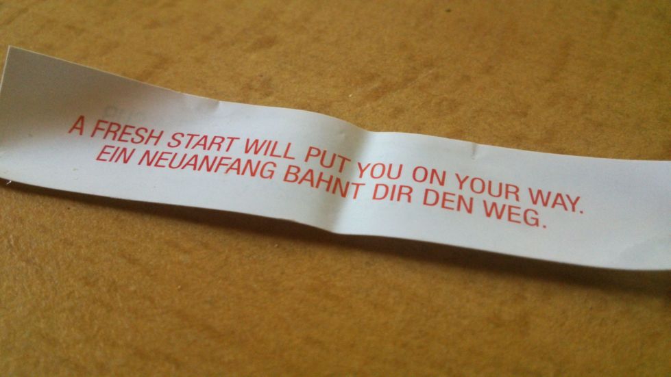 I felt so stuffed when we leaved the asian restaurant yesterday and then we got a fortune cookie too but we all didn´t want to open it yesterday as we felt replete with food. But today I did open the fortune cookie. My fortune cookie suggests “A fresh start will put you on your way”. This sounds mysterious.