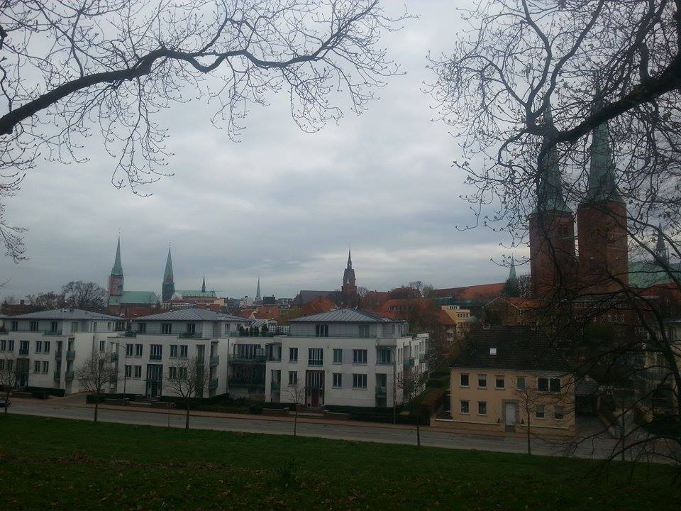 Some days ago I went for a walk with my mother. We roamed near the inner-city of Lübeck. We took some photos with our phones. Above you can see one of the photos, we shot in the direction of the historic city where you see some churches of Lübeck.