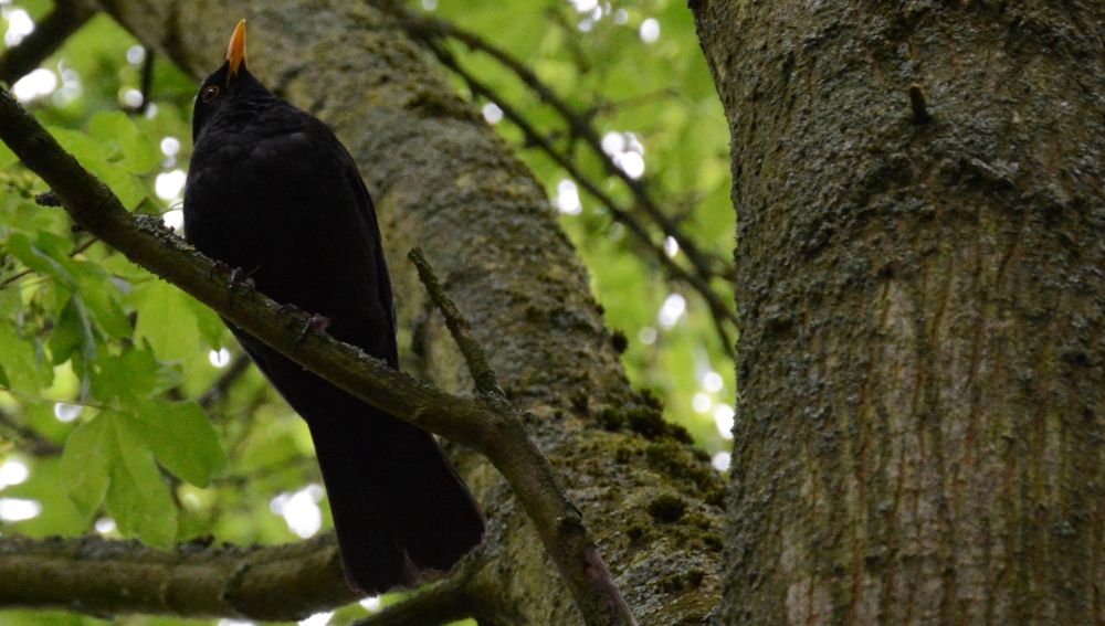 The result is that I can now basically show you the photo as if I would have had a tele lens on my camera. I think the bird should be a common blackbird, they have orange beaks and orange rings around the eyes.