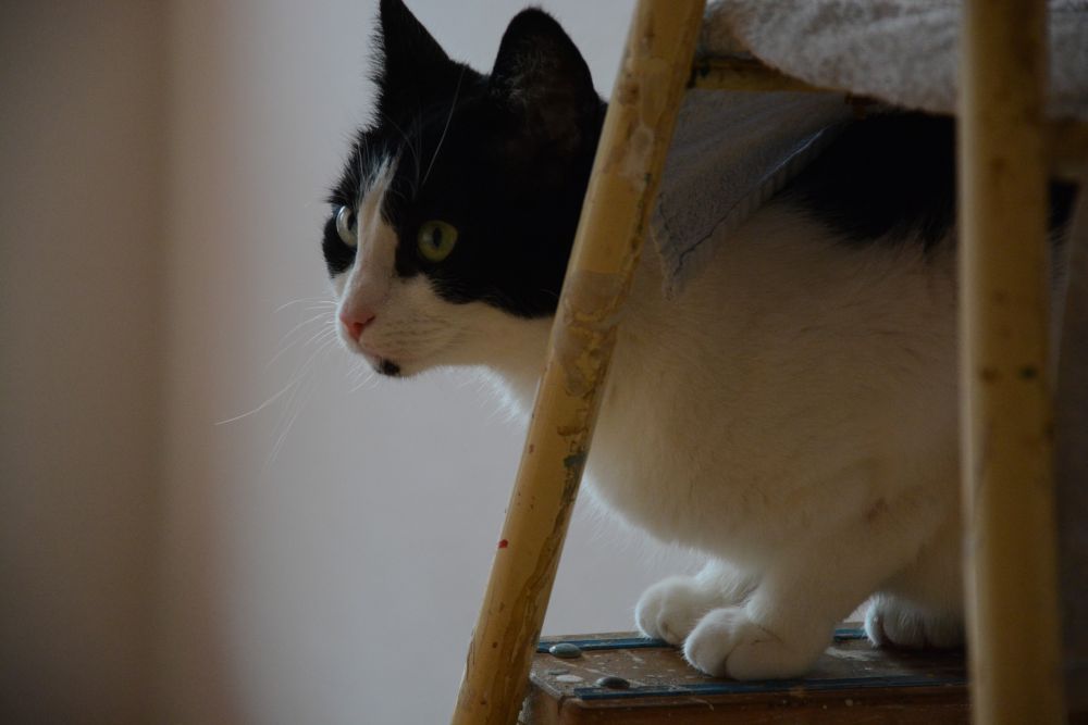 We used the ladder for a few cat photo shootings. My favorite was even shot with my old digital camera, I applied a paint effect in Photoshop and you can find the image here. Then I also shot several photos with my cat and the ladder in front of my red curtains.