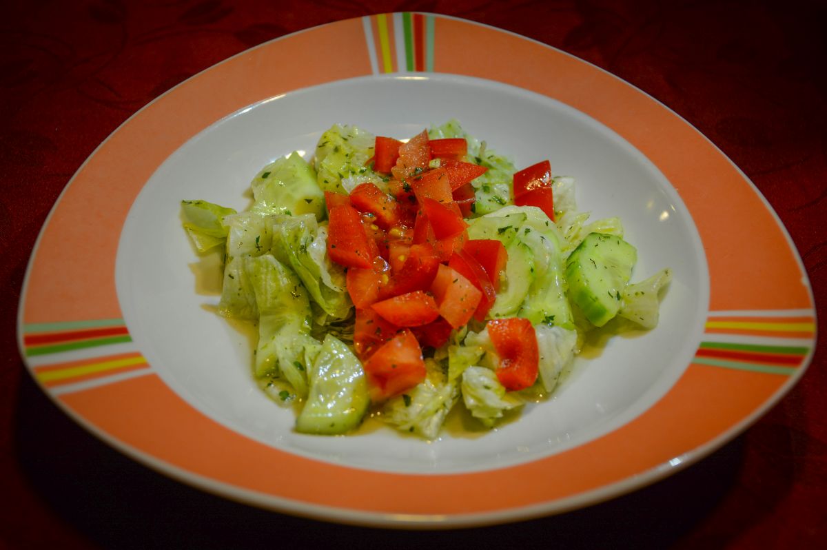 The theme of the recent WordPress Photo Challenge is about vibrant colors. I thought I would participate with a photo of a salad. I do not only like to eat salads, I do also like the colors of salads. I do usually add tomato, cucumber, lettuce and paprika to my salads, that means there are at least two vibrant colors, red and green, unless I add a paprika with a different colour like green or yellow.