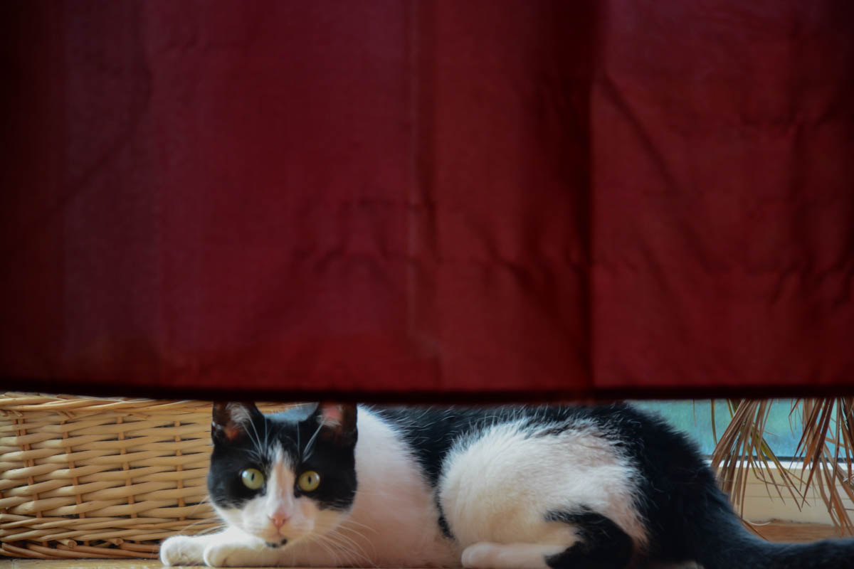 Here is yet again a photo of my cat Shyna, because there are not enough photos of her on my blog, and of course I’m kidding. The photo is not of greatest quality, but I like the scene a lot. My cat has always an eye on me, she takes care about me. Because I know that, I thought I would take a look behind one of my curtains, but the fur monster did already expect that. I had to laugh when a friend once said he would feel like being observed, while my cat sat in the corner and stared at him.
