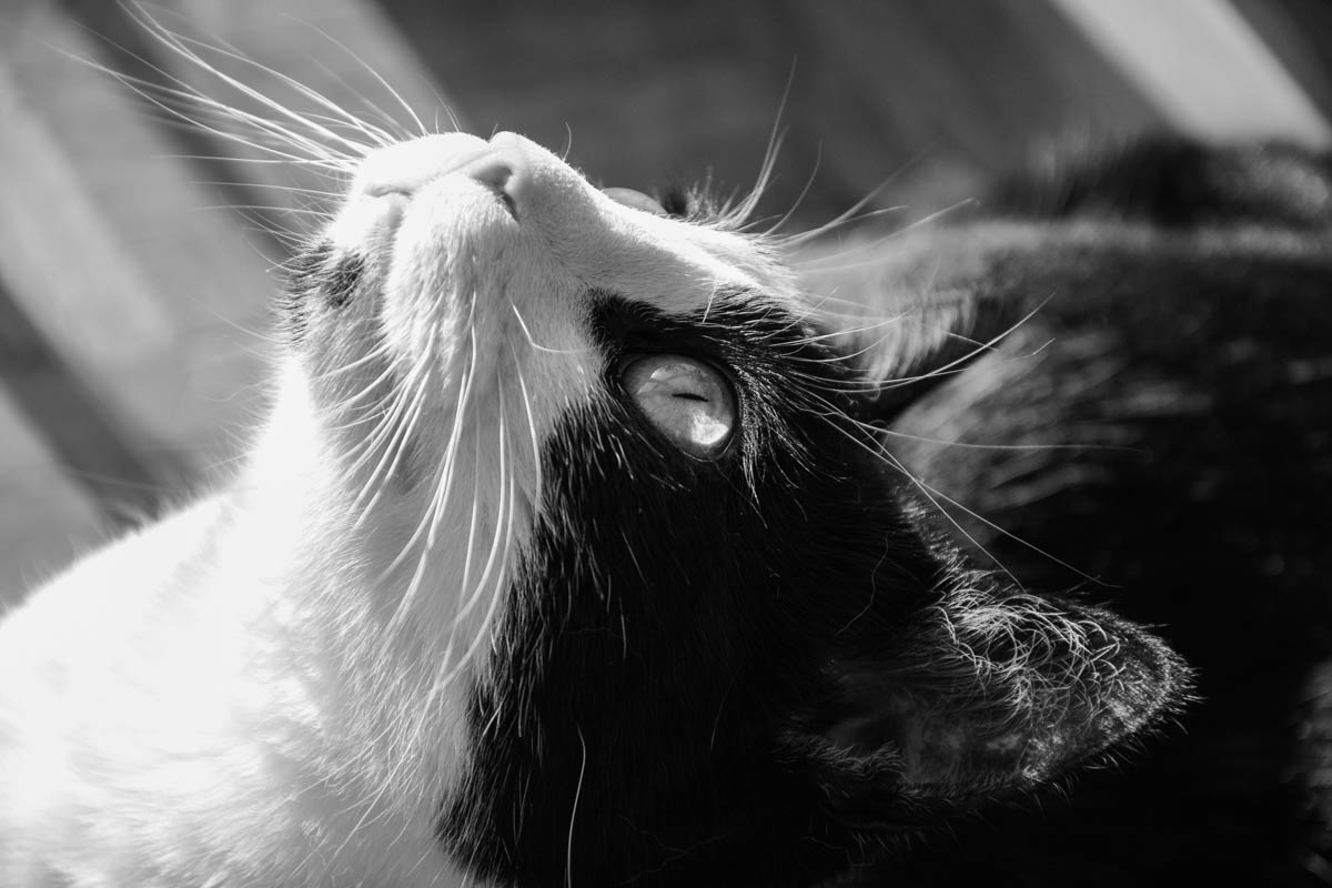 Just throwing in another photo of my cat Shyna. Found this one in my Lightroom library, and I really like the unusual perspective. But I didn’t like the photo in colour and changed it to black and white. Of course, that always fits with a black and white cat as the subject. But to be honest, cats are always beautiful, and you can’t do anything wrong when you want to take pictures of them. I hope you like this photo, check out my other cat photos and stories.