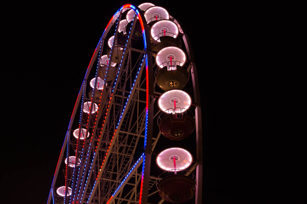 Here is another shot that I tried out yesterday. I saw the big wheel in one of the Christmas market areas and thought this would make a great photo. I didn’t want to have the Christmas market stands on the picture or any people, that means I looked for a good angle. I basically just wanted to have the dark sky and the colourful big wheel on the photo. I think I achieved that, and I like the angle. I shot the photo handheld at 1/30 second, f/4.8 and ISO 1600.