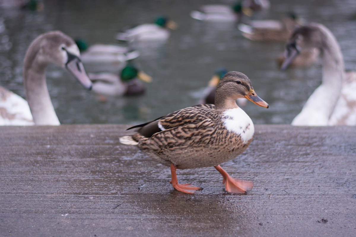 I have no more problems with my leg, it’s now just an annoying issue of the past. But the weather is still kinda boring and I still don’t want to go for a long hike. But I went to one of the local ponds with my mother because you can find a lot of ducks there and swans. That’s where I shot the walking duck photo that you can see above in this post.