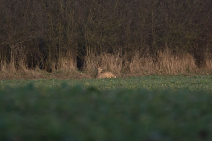 Yesterday was a sunny day, and it was expected that the weather would be good today too. Well, today it was not very sunny and still cold, but the weather was good enough to convince me to go for a long hike. I packed my camera into the bag and visited my grandma, and after “Kaffee und Kuchen” I started my hike. I didn’t have something special in my mind, I just wanted to get out of the city and randomly decided which direction to go. I left the city on the north-west side because that is where I would expect to find deer. When I was still in the outer part of the city, I looked for birds because there are some beautiful parks, but I sadly had not much luck to take nice bird photos because they were incredible shy today. Outside of the city I could spot deer, but excuse the crop, it was far away…