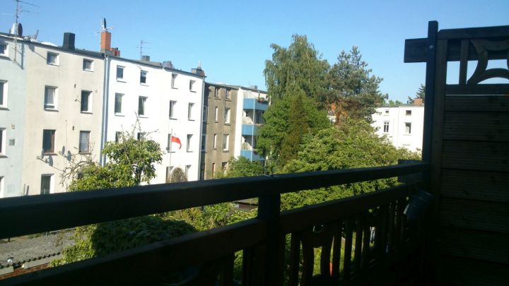 Later we decided to purchase one more beer but that is usually difficult on a Sunday because most shops are closed. We found a snack bar and asked for an Alster Beer (shandy beer) but they didn’t have one. No problem, we purchased a beer and a Fanta soda bottle, because if you mix them both, you get a soft Alster beer and it’s very delicious. We went to the district where my friend lives and sat on his balcony. It’s funny, the view from his balcony is quit shady because all the buildings are quite old, but on the other side it is appealing for the exact same reason. In the afternoon, he has a lot of shadow on the balcony, that’s great when there is so much sun. Our mixed beer was super delicious too. Summer feeling came up today, because it was nice to spend time with a friend in the city.