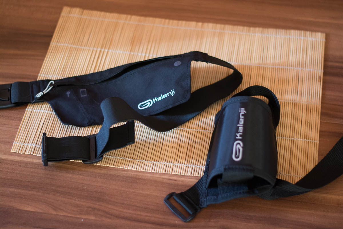 I went back to the running equipment to take a look if I can find some accessories. I remembered how I hated it to run without water and with the keys always in my hands. I found a belt for a water bottle, it would cost €3.99, what a no-brainer. I tried to feature out how this thing works, but then I understood and it was clear this would hold really well. The keys and my smartphone in the mind I wondered if I could find a belt for it too and yes there was one for €8.99 in a real minimalist or flat style, and it still wouldn’t kill my set budget. Finally I found a nice running shirt for €3.49, these accessories were all from the label Kalenji. At the cash point I paid €31.47 for all of it, that was really just slightly above my budget.