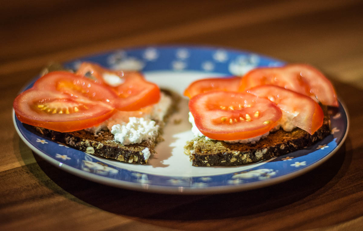 So, this is a nice evening meal with low-calories. I still like to eat cold cuts, but recently I started to eat more poultry cold cuts than other sorts of meat. I still have my days where I don’t care what I eat, because as mentioned in previous related posts, I want to enjoy life. But when I did sports, I prefer lighter meals and it shows results. I think jogging introduces me into some healthy habits or it does at least make me look a bit more at what I do eat in the week. I think there are also people who would say that bread is a no-go because of the carbohydrates, but I don’t want to be on a low-carb diet, because I don’t care about all this non-sense at all. I just want to try out different eating habits, while still having days in between where I simply don’t care at all about all this. I still like some hefty meals and I can compensate it with the running, but sometimes I just like a light meal after the running.
