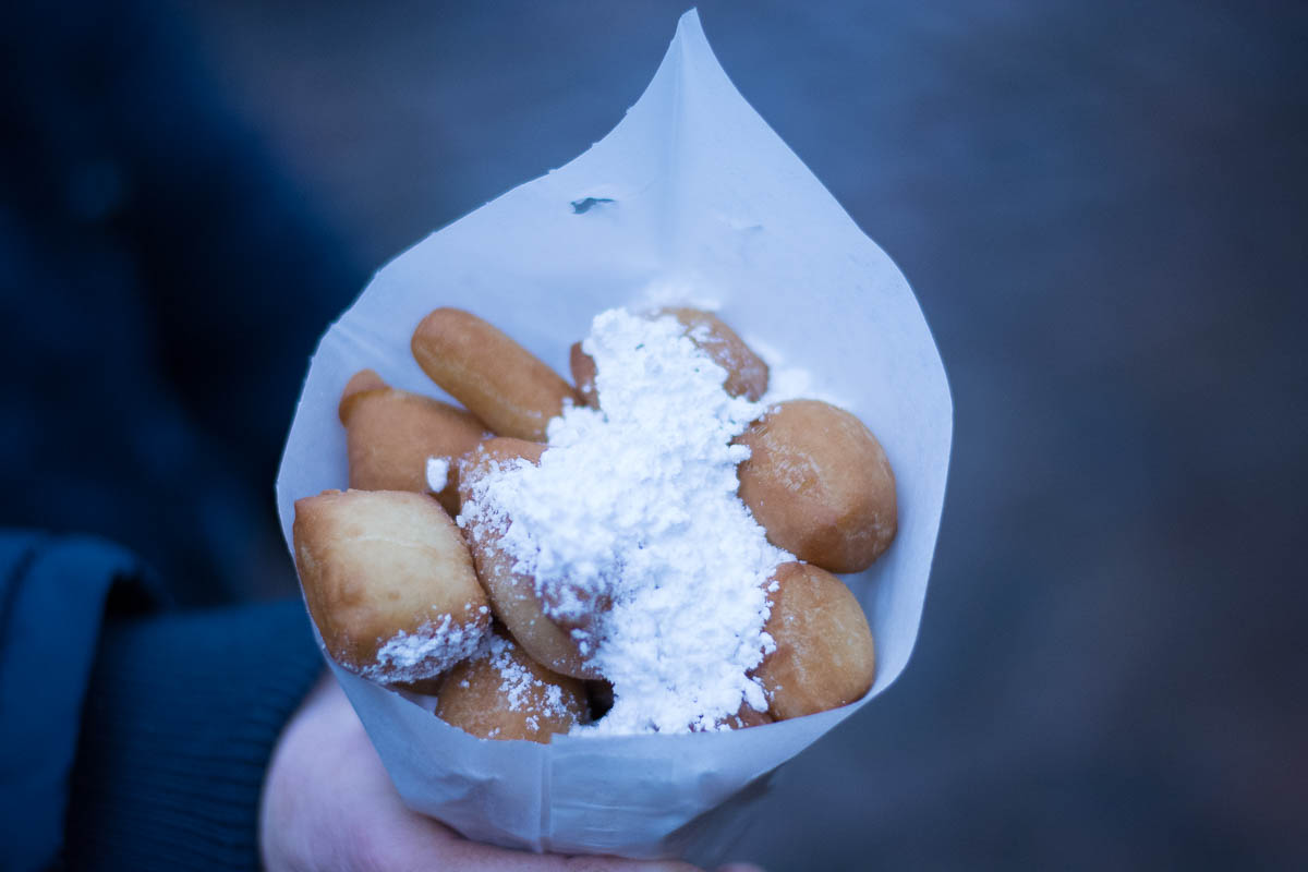 Every winter or before Christmas I buy a bag of Mutzen sometimes, and they are tasty small biscuits. I am not a great cook and I can’t give you an exact recipe but as far as I know they are made of flour, eggs and sugar. The pastry is put into hot oil and the result are those cute and tasty looking pastry balls. Mutzen are a Rhenish recipe as I have read, and it was a traditional biscuit for carnival and new year’s eve. But that just seems to be the history of it, but today you will probably find them everywhere in Germany, especially on Christmas fairs or during other celebrations. It’s also possible to find them in summer if you know where. But for me, they are traditional winter biscuits. I shot the photo in this post a few days ago because I visited our Christmas fair together with my mother, and usually when we do that, we purchase a bag of Mutzen and snack them.