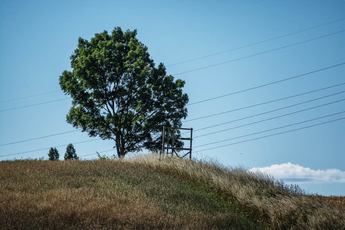 I took the shot above because I somehow liked the scene. I liked the slope of the field and the tree behind it. And how the electricity grid has its path behind the tree. Since the clouds are so low, it almost looks like I am on a hill, but in reality it’s just Northern German flatland. It seems there is also a deer stand. I do assume that a hunter is shooting deer in the morning at this place. I hope you like the photo too!