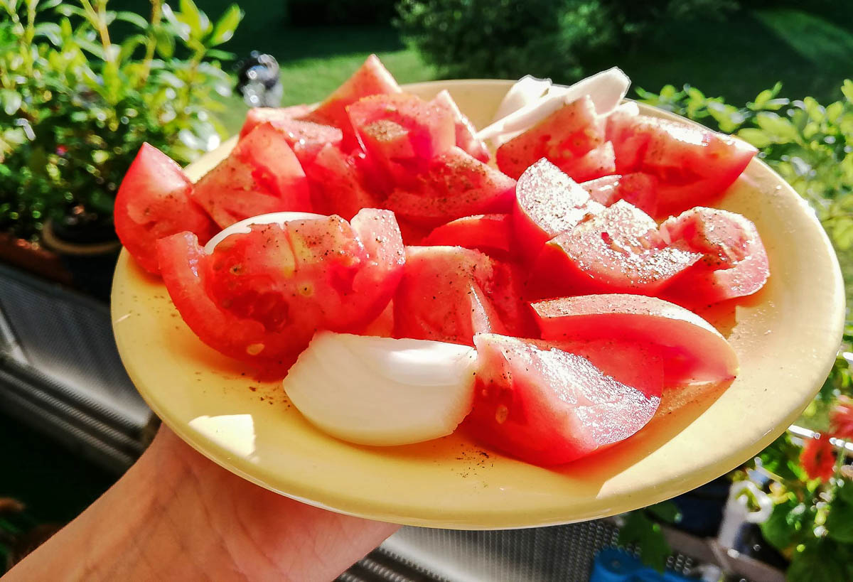 Like the other day, I managed it again to do 4 km today. Yesterday I didn’t manage it but it was quite humid and I gave up after 3 km. But today it was warm but very windy and this is how summers have been here a long time ago. It’s the fresh breeze that makes it acceptable. So, I put my running clothes on and went outside and I enjoyed the exercise with the wind. When I was done and after the shower, I visited my mother. She cut some tomatoes and onions and we ate them with pepper and salt. So, I’d say it was basically a salad without oil and dressing but you don’t always need that. I also enjoy eating just vegetables with a bit of pepper and salt. It was a great day.