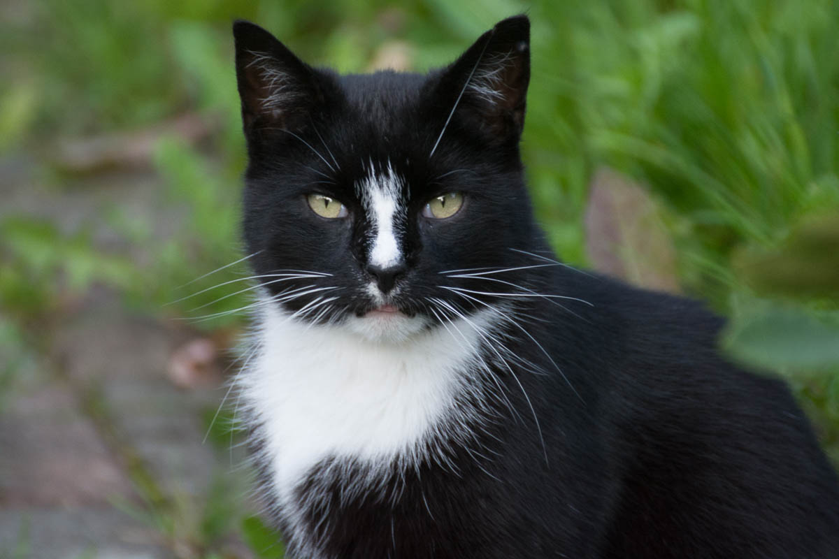 Today I attempted to take a photo of a black cat that sat there on a small path in the gardens. But this cat didn’t give me much time to take photos and disappeared in the hedge. There was a woman in one of the gardens and saw my attempt. I wondered if it would be her cat and I said: “I tried to get a photo, this cat is pretty shy”. She replied that this is true and that it’s not her cat. She mentioned that this is a stray cat but it comes for a visit once in a while. The woman mentioned that she always provides a water bowl and a food bowl and since then they became friends. She said, “Some people here fire at the stray cats with pellet guns, I give them food and water” and I said she’s doing the right thing. I continued on my path and after a minute I saw the black cat again, this time in an empty and overgrown garden plot and now I could take a decent photo…