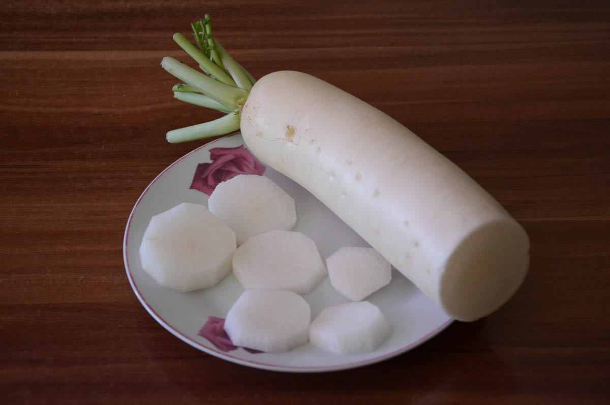 This is incredibly tasty, we call it “Rettich” in Germany. I actually tried to translate it but found out it is called “radish” in English, which is strange. Why? Because it seems the same word is used for another type of vegetables, the one we call Radieschen. I have no clue why “Radieschen” and “Rettich” are both called “radish” in English. Yes, they taste similar but they look very different. How do you distinguish if someone sends you to purchase “radish”?