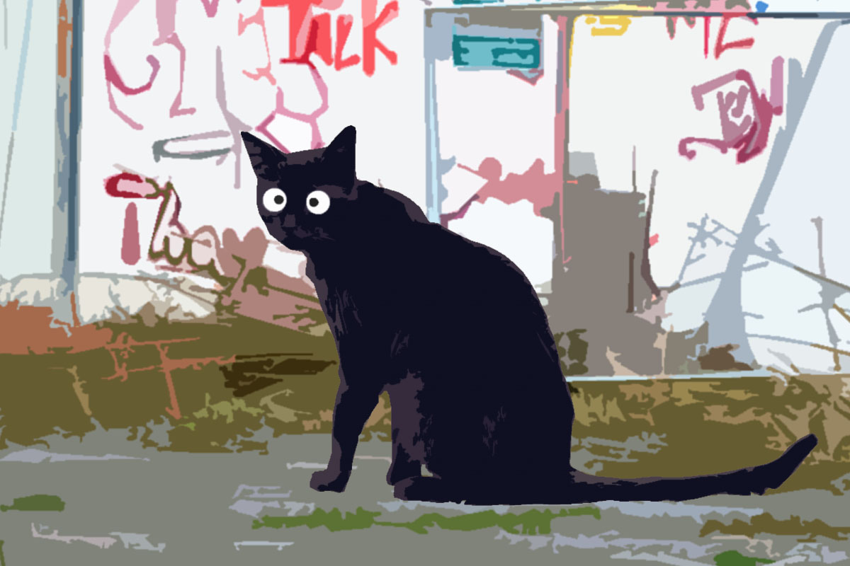 The image at the top is the result of a sleepless night. I basically experimented with the idea to reduce the number of colors in some of my photos. It all started with a cat photo I shot. I reduced the color palette to the point that it started to look like a cartoon cat and a nice side-effect of it was that it became quite easy to cut the cat out and remove the background. Then I did experiment with some of the artistic painting effects in the filter gallery of Photoshop. I did especially like the “cutout” effect. But I didn’t like the real eyes of the cat and I thought it would be funnier to add two big circles with a standard brush, and two small black pupils to make the cat eyes look cartoonish. This is how the cat looked like before I added a background with the cartoon eyes already added…